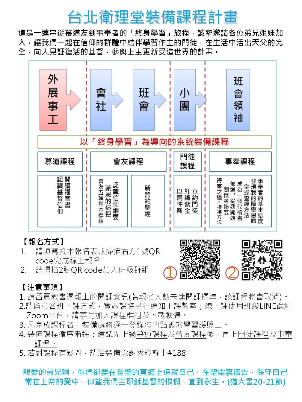 裝備處第二季課程將於九月起陸續開課,邀請弟兄姊妹踴躍報名參與接受裝備造就。
